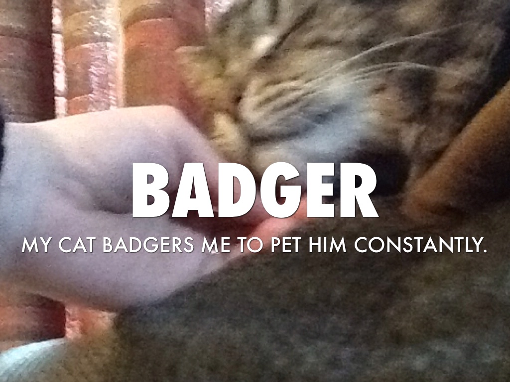 MY CAT BADGERS ME TO PET HIM CONSTANTLY.