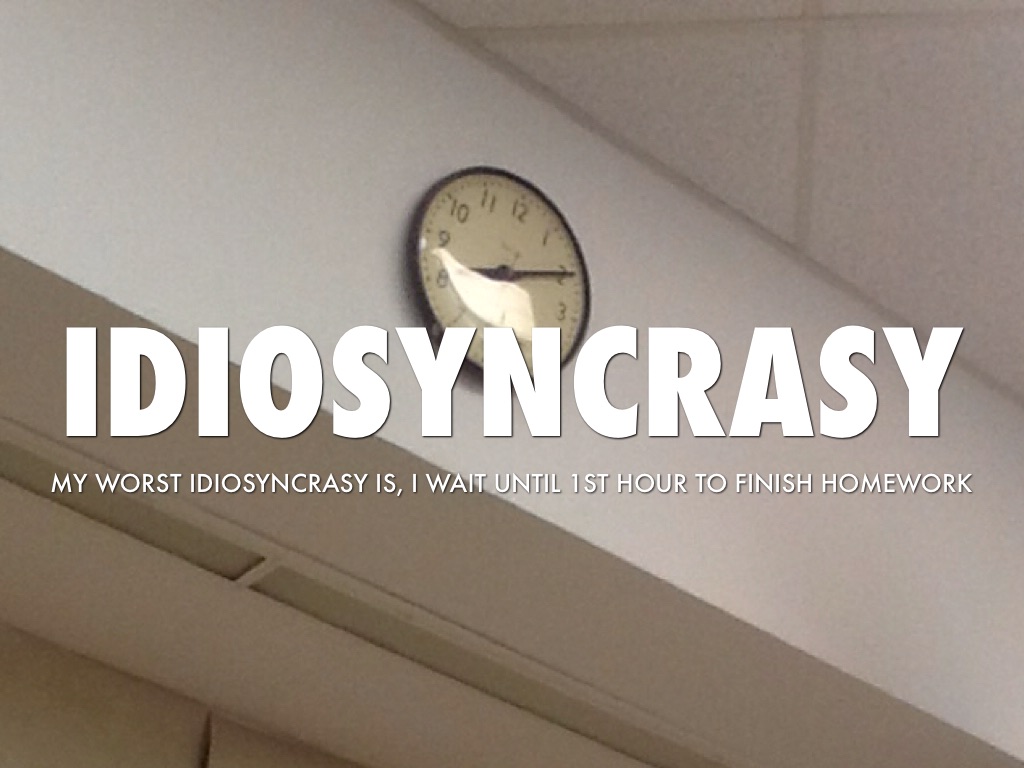 MY WORST IDIOSYNCRASY IS, I WAIT UNTIL 1ST HOUR TO FINISH HOMEWORK