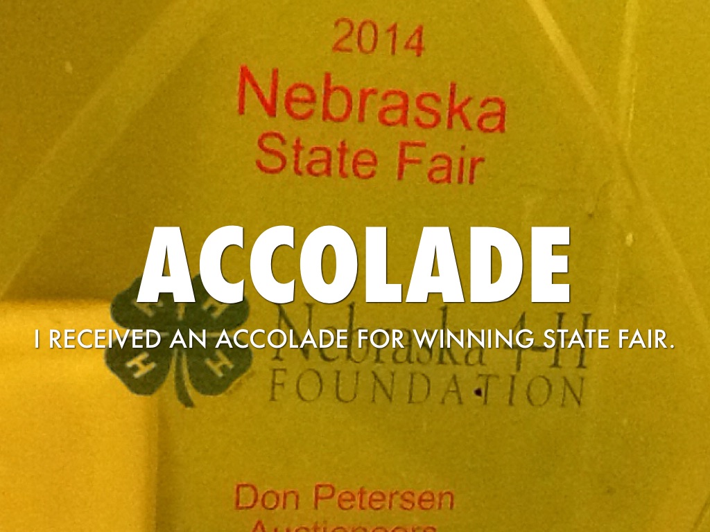I RECEIVED AN ACCOLADE FOR WINNING STATE FAIR.