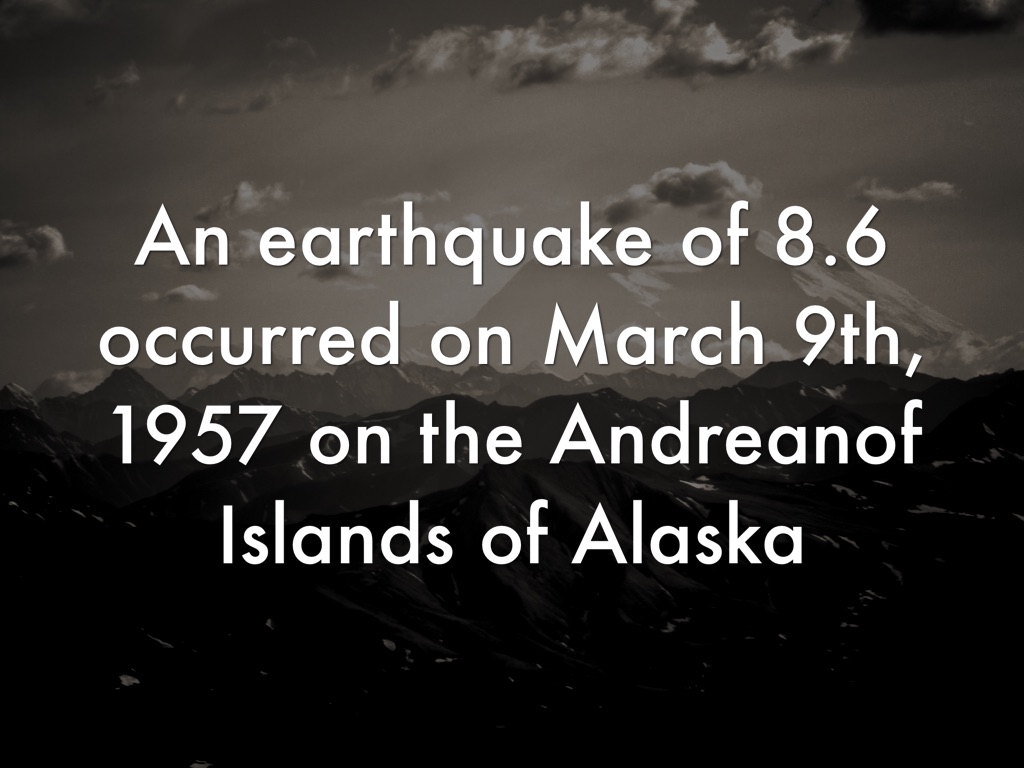 An earthquake of 8.6 occurred on March 9th, 1957 on the Andreanof Islands of Alaska