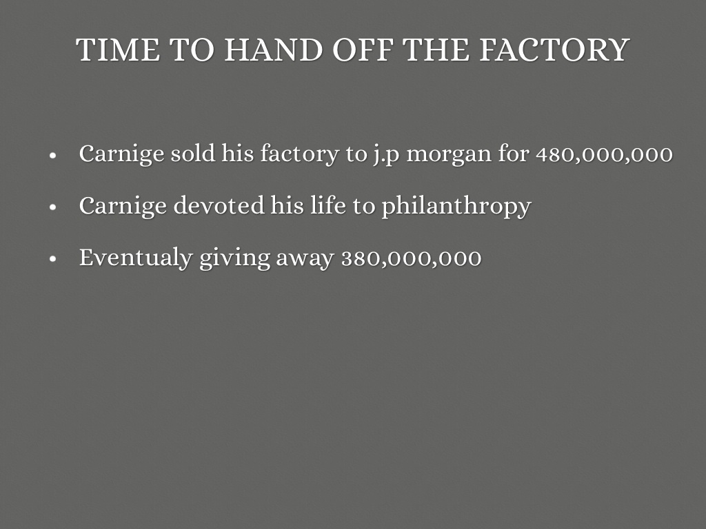 • Carnige sold his factory to j.p morgan for 480,000,000