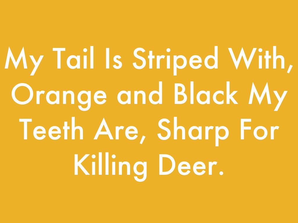 Orange and Black My Teeth Are, Sharp For Killing Deer.