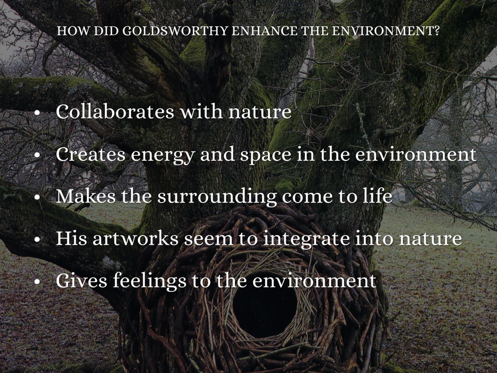HOW DID GOLDSWORTHY ENHANCE THE ENVIRONMENT?