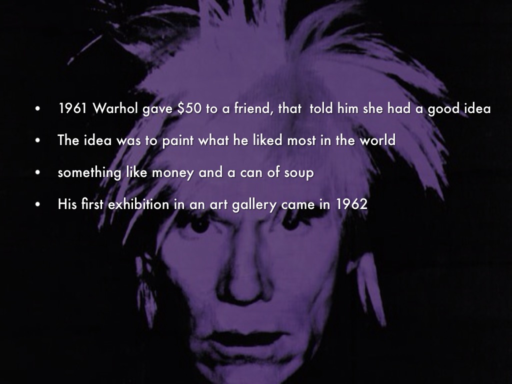 1961 Warhol gave $50 to a friend, that told him she had a good idea