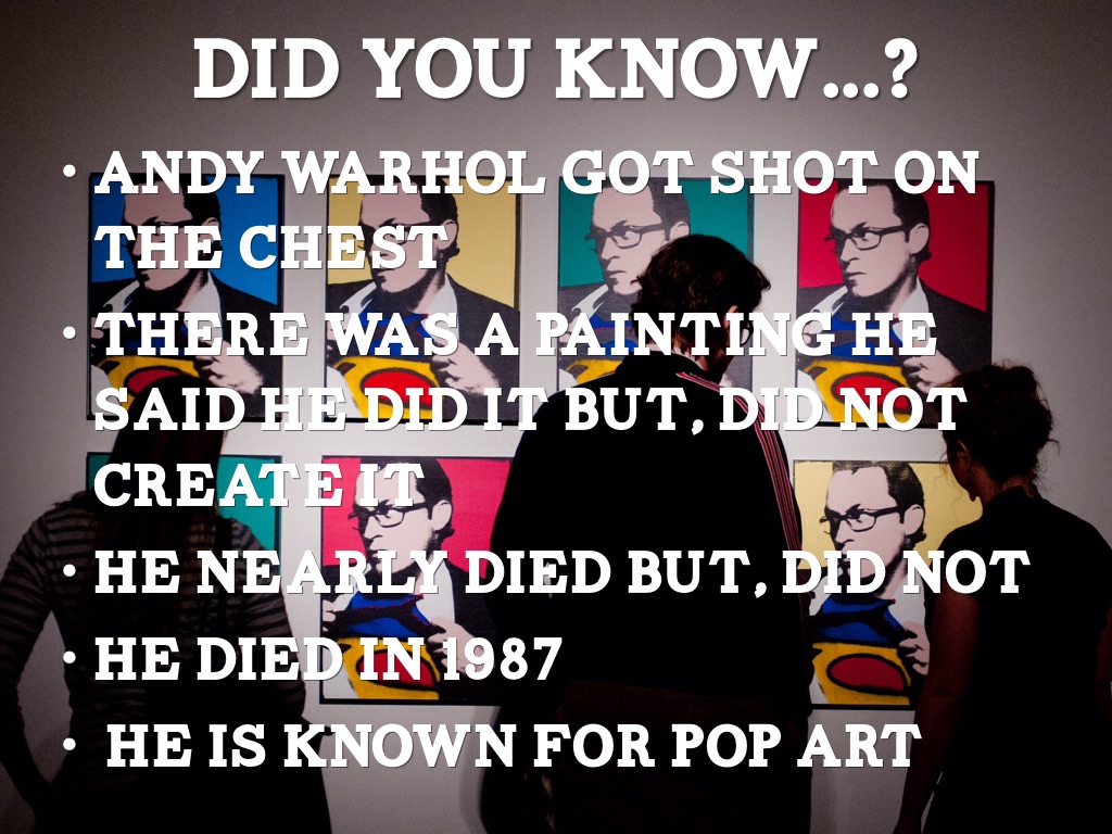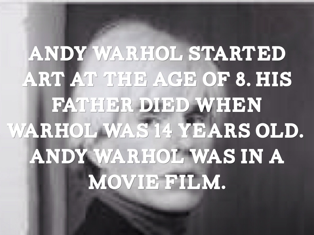 Andy Warhol started art at the age of 8. His father died when Warhol was 14 years old. Andy Warhol was in a movie film.