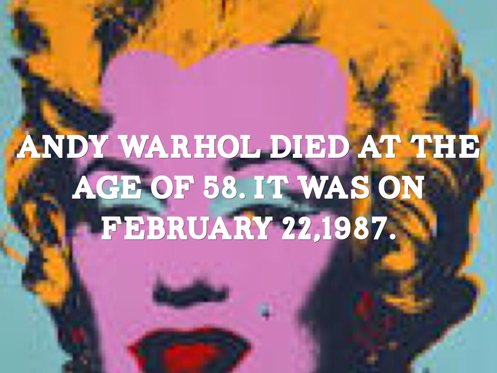 Andy Warhol died at the age of 58. It was on February 22,1987.