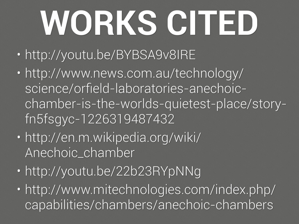 • Acoustic anechoic chamber: Greatly lessens the sound waves that travel back to a subject
