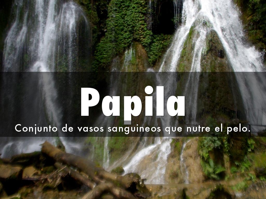 La papila: Conjunto de vasos sanguíneos que nutre el pelo mediante difunsion.