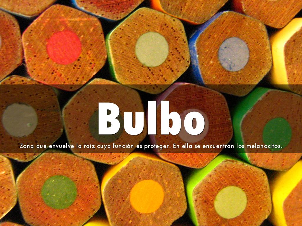 El bulbo: Zona que envuelve la raíz cuya función es proteger. En esta zona se localizan los melanocitos que dan color al pelo.