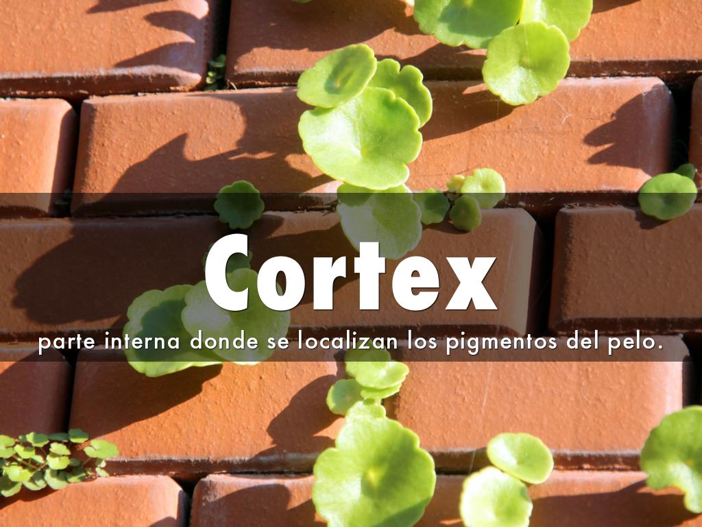 El cortex: Parte interna del tallo formada por queratinocitos y donde se localizan los pigmentos del pelo, es la parte más abundante.