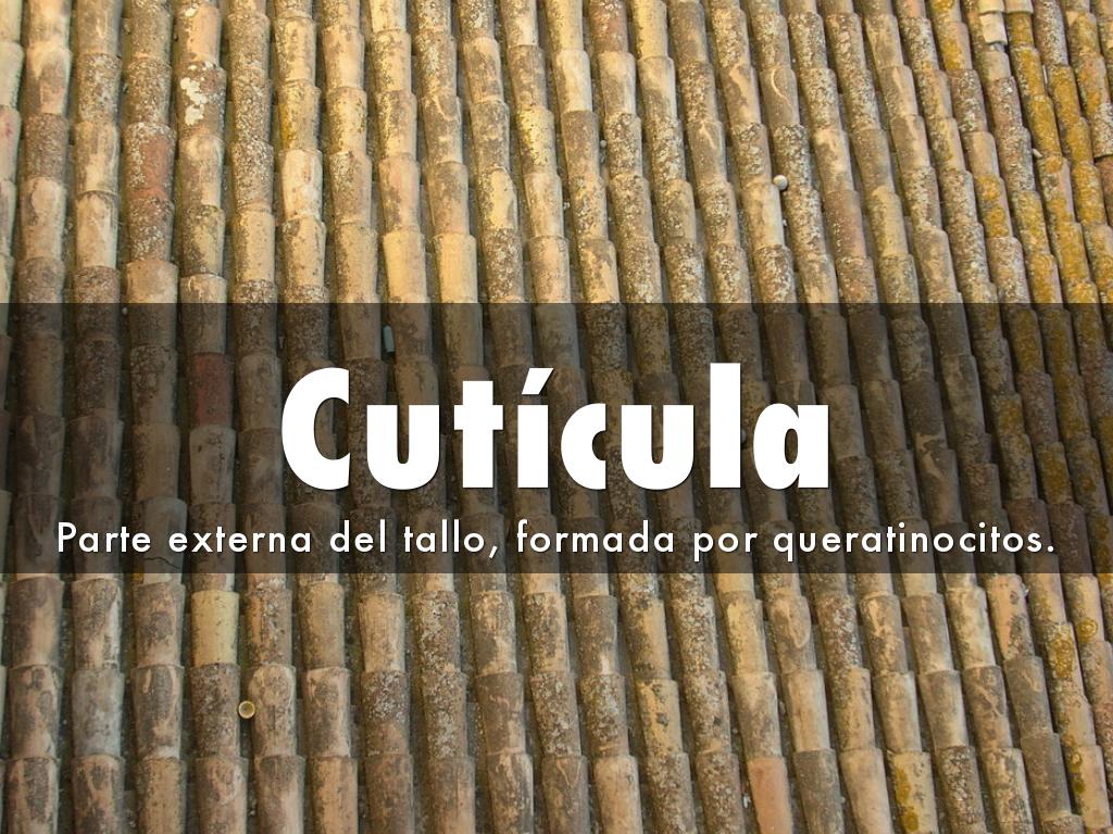 La cutícula: Parte externa del tallo capilar formada por queratinocitos muertos ordenados a modo de teja.