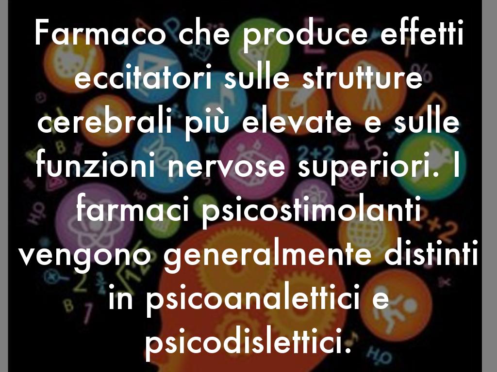 Farmaco che produce effetti eccitatori sulle strutture cerebrali più elevate e sulle funzioni nervose superiori. I farmaci psicostimolanti vengono generalmente distinti in psicoanalettici e psicodislettici.