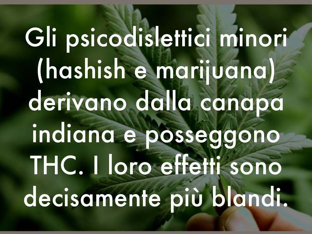 Gli psicodislettici minori (hashish e marijuana) derivano dalla canapa indiana e posseggono THC. I loro effetti sono decisamente più blandi.