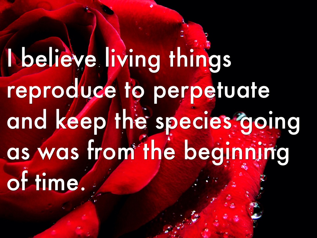 I believe living things reproduce to perpetuate and keep the species going as was from the beginning of time.