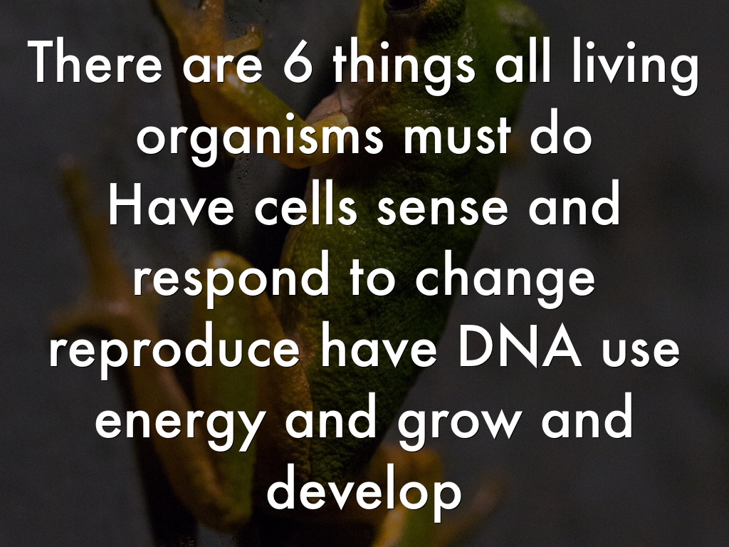 Have cells sense and respond to change reproduce have DNA use energy and grow and develop