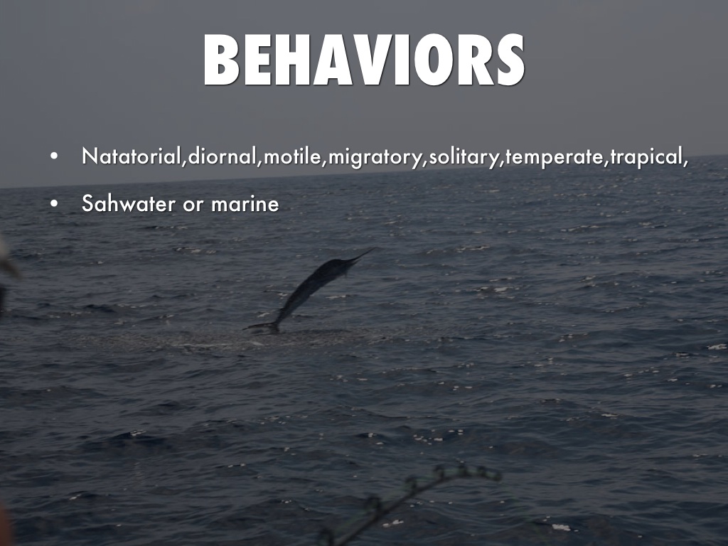 Natatorial,diornal,motile,migratory,solitary,temperate,trapical,