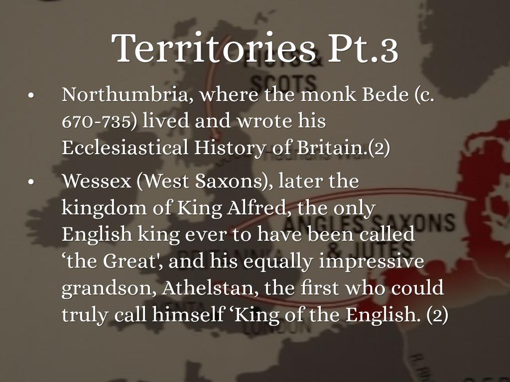 Northumbria, where the monk Bede (c. 670-735) lived and wrote his Ecclesiastical History of Britain.(2)