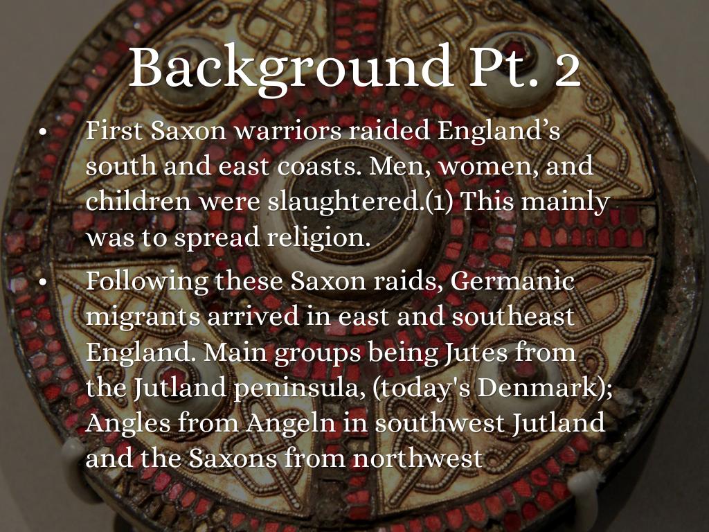 First Saxon warriors raided England’s south and east coasts. Men, women, and children were slaughtered.(1) This mainly was to spread religion.
