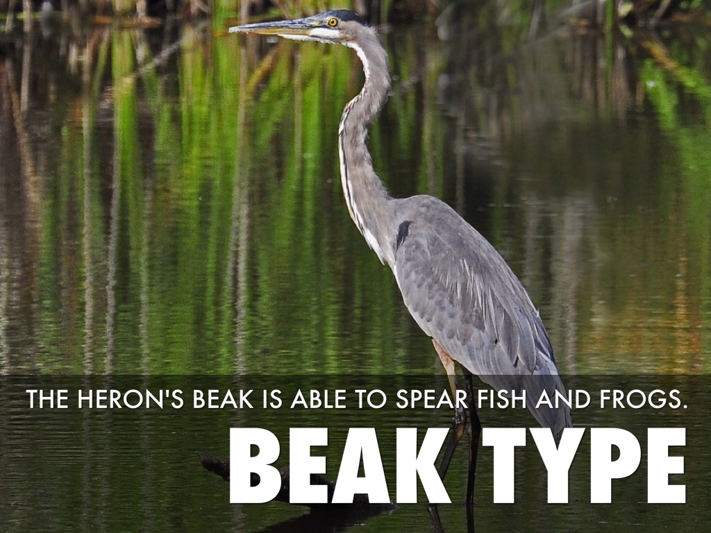 THE HERON'S BEAK IS ABLE TO SPEAR FISH AND FROGS.