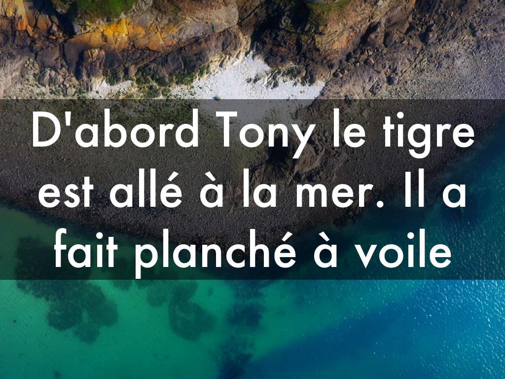 D'abord Tony le tigre est allé à la mer. Il a fait planché à voile