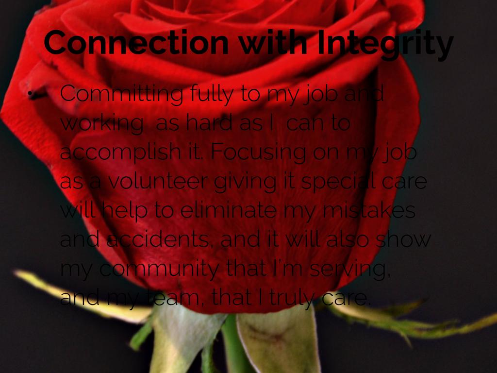 Committing fully to my job and working as hard as I can to accomplish it. Focusing on my job as a volunteer giving it special care will help to eliminate my mistakes and accidents, and it will also show my community that I’m serving, and my team, that I truly care.