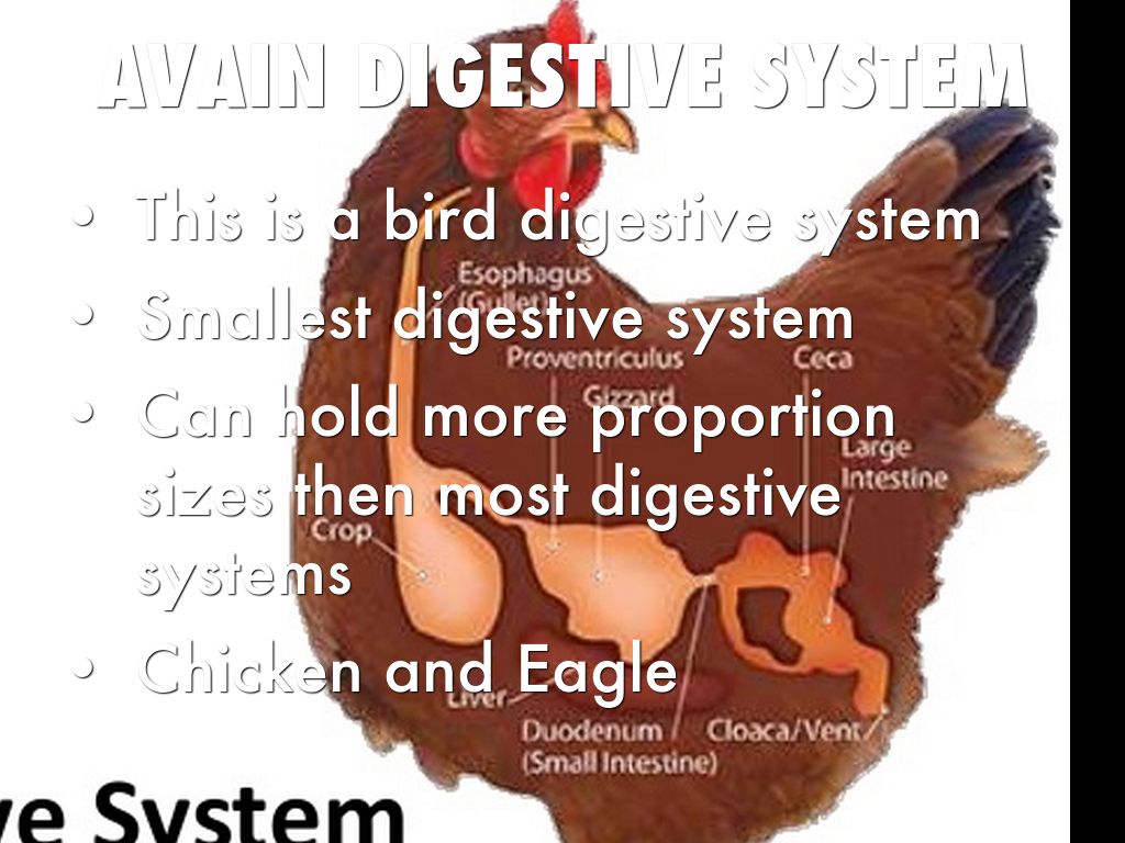 First it goes to the beak then the Oesophagus then the crop then the proventriculus then the gizzard then the liver then the pancreas then the intestine then the cloaca