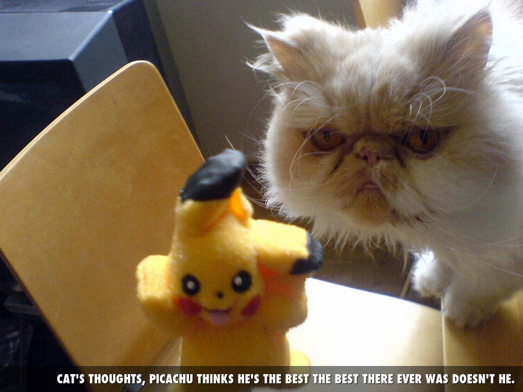 CAT'S THOUGHTS, PICACHU THINKS HE'S THE BEST THE BEST THERE EVER WAS DOESN'T HE.
