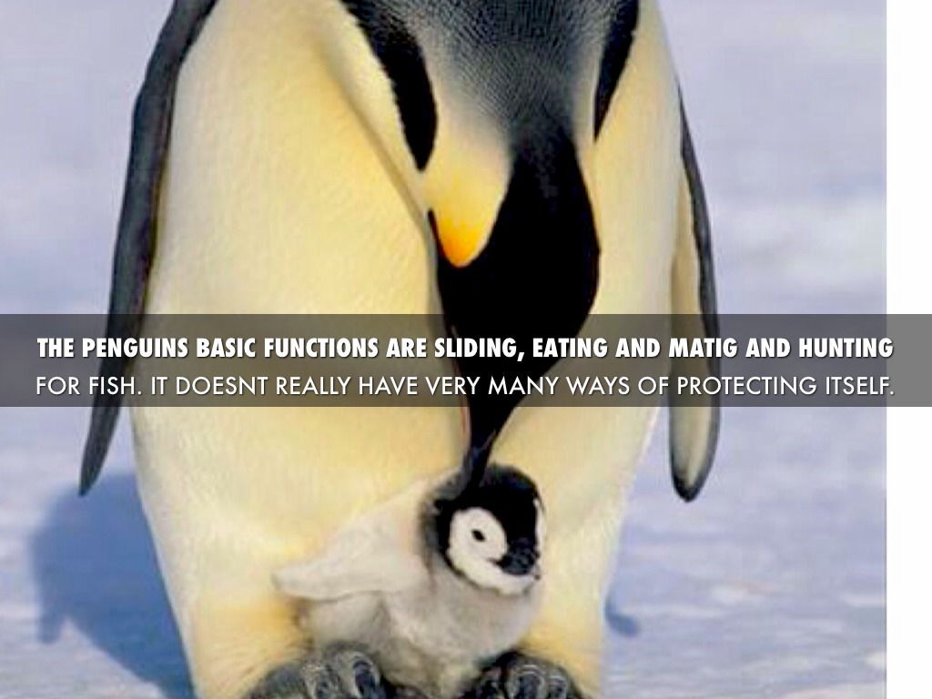 THE PENGUINS BASIC FUNCTIONS ARE SLIDING, EATING AND MATIG AND HUNTING