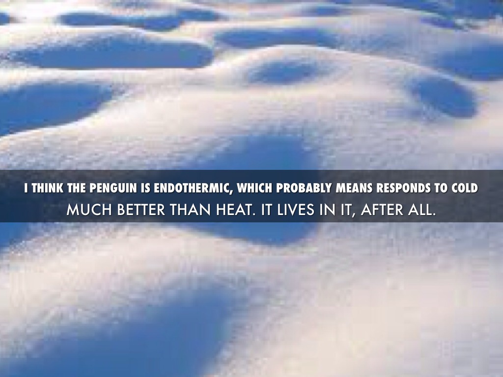 I THINK THE PENGUIN IS ENDOTHERMIC, WHICH PROBABLY MEANS RESPONDS TO COLD