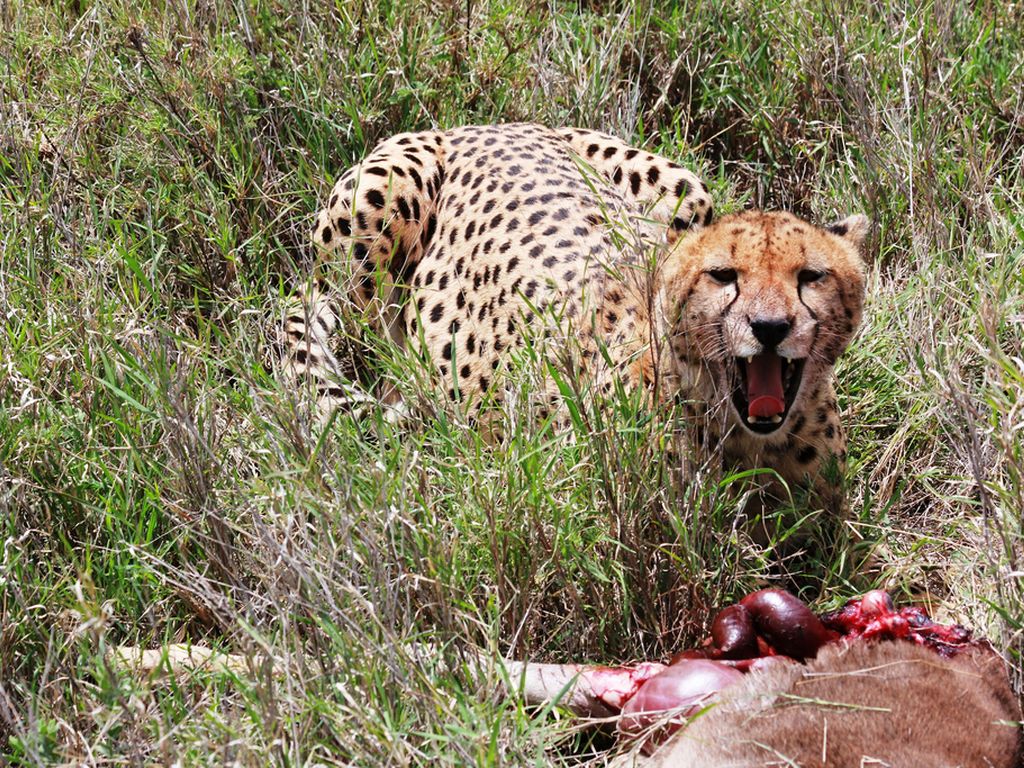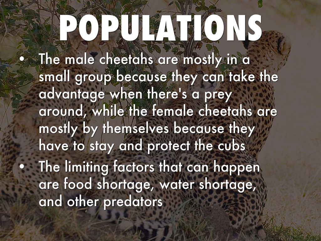 The male cheetahs are mostly in a small group because they can take the advantage when there's a prey around, while the female cheetahs are mostly by themselves because they have to stay and protect the cubs