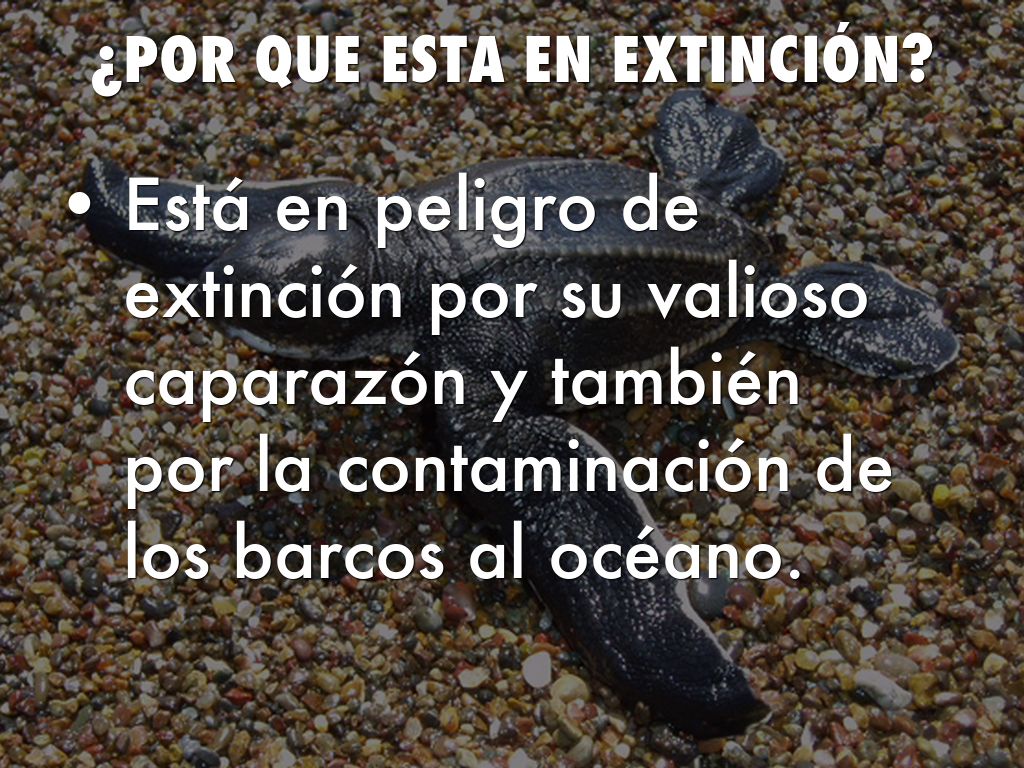 - Está en peligro de extinción por su valioso caparazón y también por la contaminación de los barcos al océano.