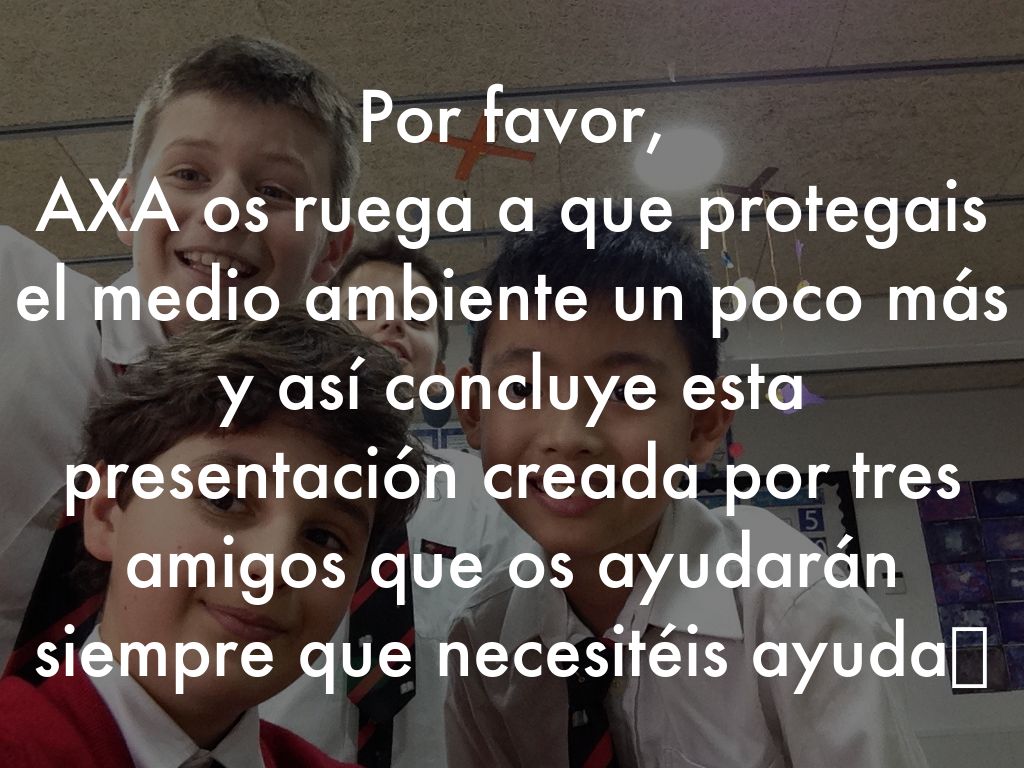 AXA os ruega a que protegais el medio ambiente un poco más y así concluye esta presentación creada por tres amigos que os ayudarán siempre que necesitéis ayuda🤗