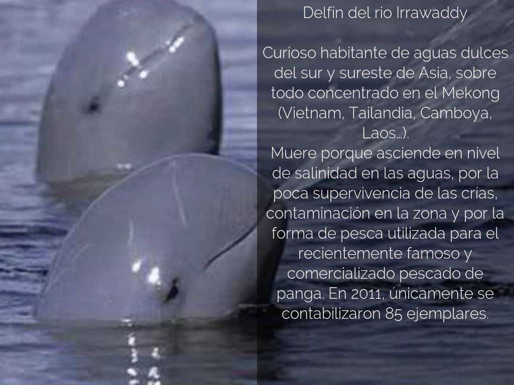 Muere porque asciende en nivel de salinidad en las aguas, por la poca supervivencia de las crías, contaminación en la zona y por la forma de pesca utilizada para el recientemente famoso y comercializado pescado de panga. En 2011, únicamente se contabilizaron 85 ejemplares.