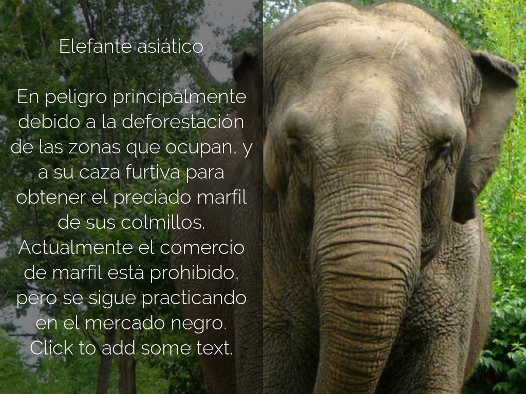 En peligro principalmente debido a la deforestación de las zonas que ocupan, y a su caza furtiva para obtener el preciado marfil de sus colmillos. Actualmente el comercio de marfil está prohibido, pero se sigue practicando en el mercado negro.