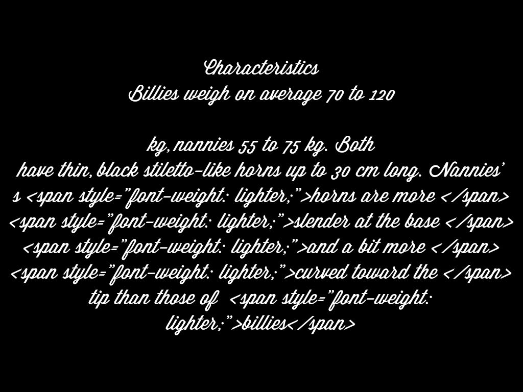 have thin, black stiletto-like horns up to 30 cm long. Nannies’