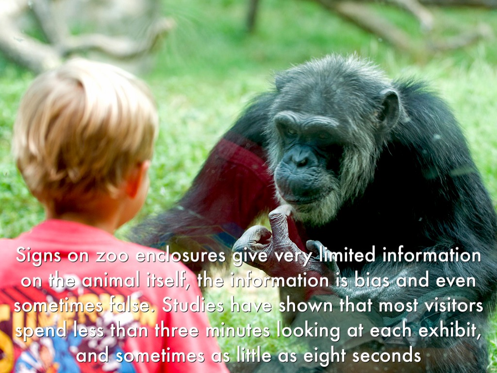 Signs on zoo enclosures give very limited information on the animal itself, the information is bias and even sometimes false. Studies have shown that most visitors spend less than three minutes looking at each exhibit, and sometimes as little as eight seconds