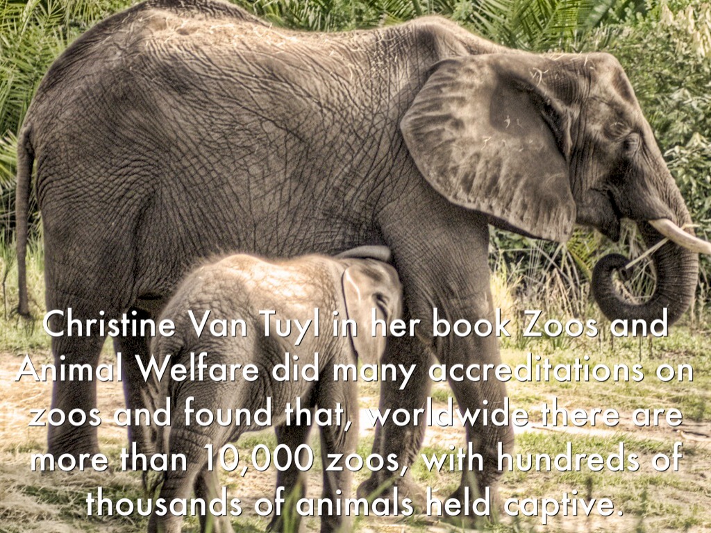 Christine Van Tuyl in her book Zoos and Animal Welfare did many accreditations on zoos and found that, worldwide there are more than 10,000 zoos, with hundreds of thousands of animals held captive.