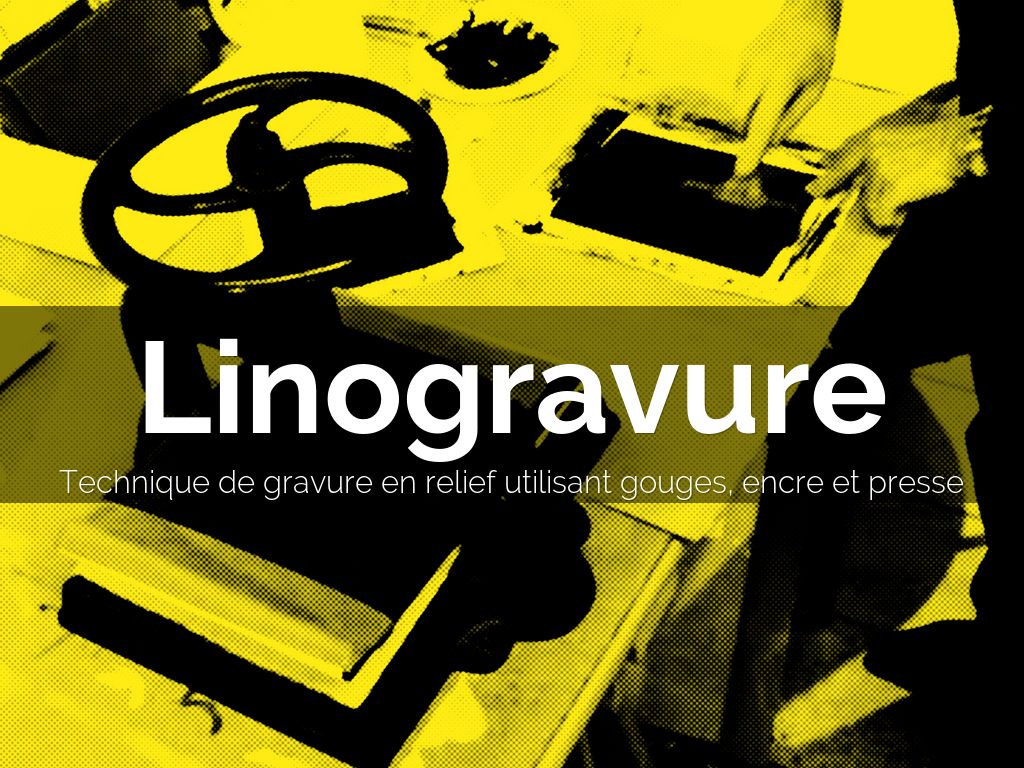 Technique de gravure en relief utilisant gouges, encre et presse