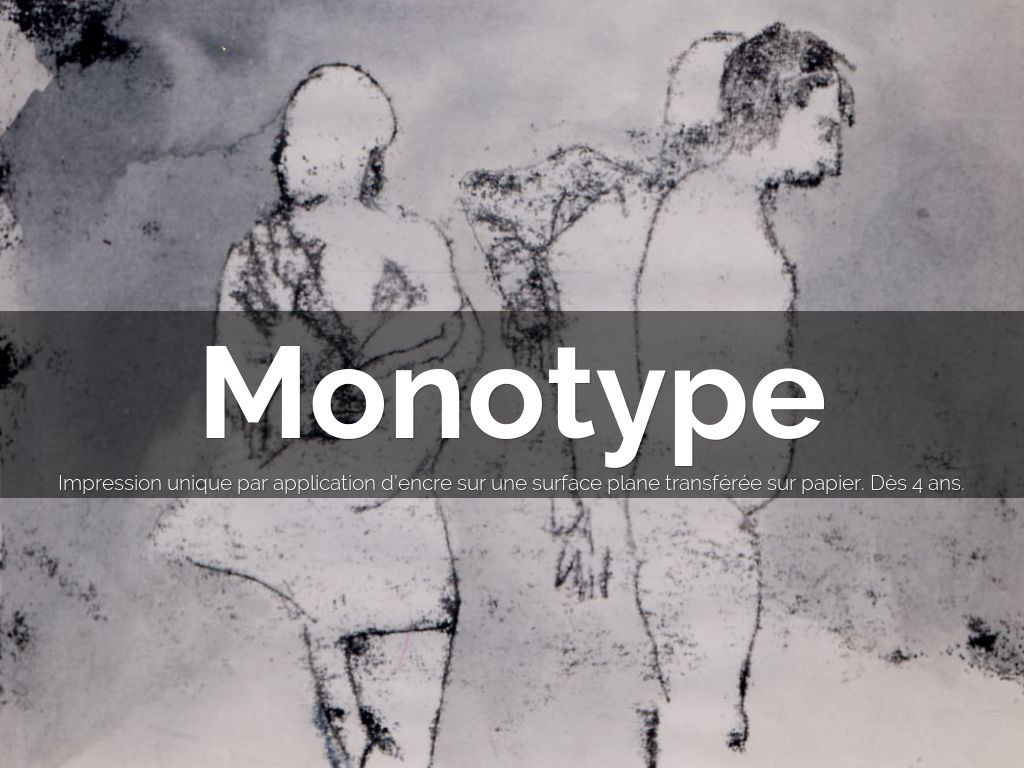 Impression unique par application d'encre sur une surface plane transférée sur papier. Dès 4 ans.