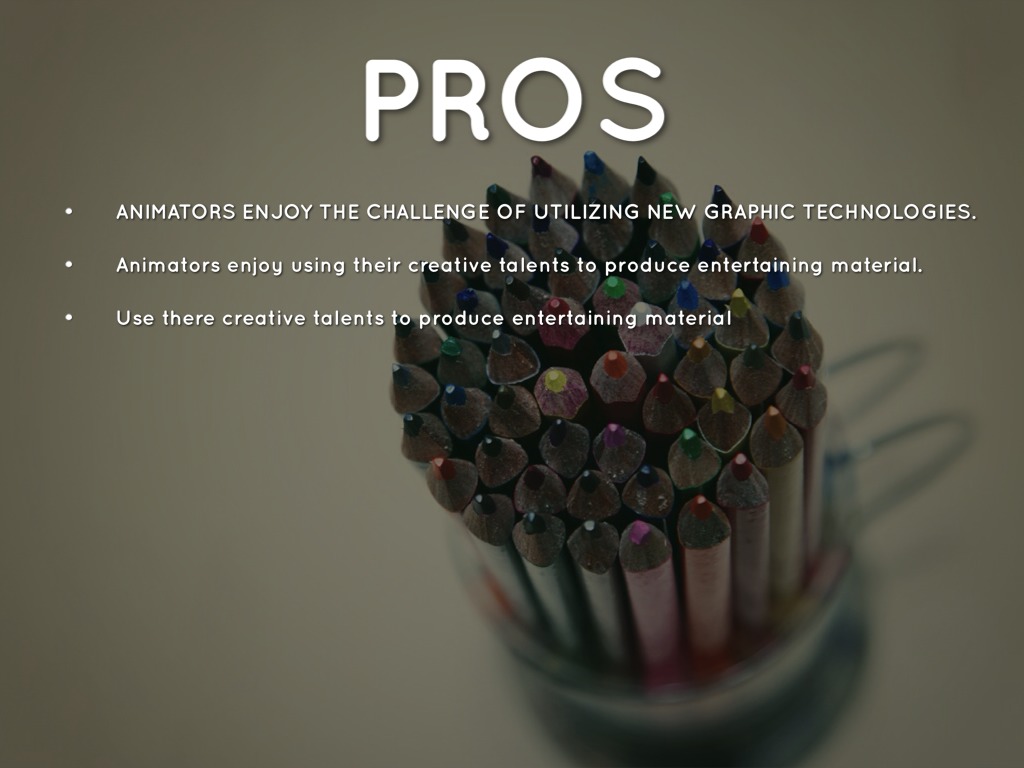 ANIMATORS ENJOY THE CHALLENGE OF UTILIZING NEW GRAPHIC TECHNOLOGIES.