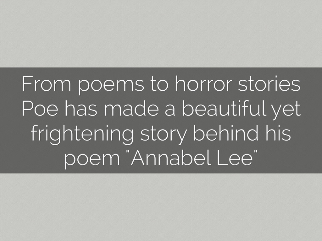 From poems to horror stories Poe has made a beautiful yet frightening story behind his poem "Annabel Lee"