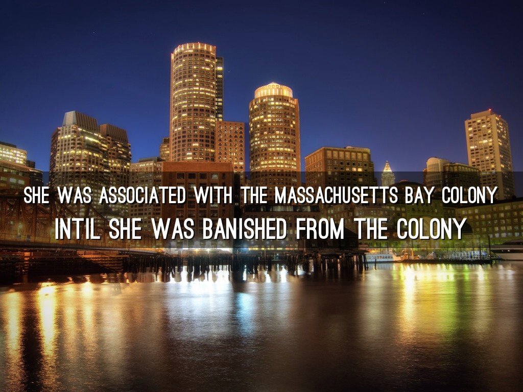SHE WAS ASSOCIATED WITH THE MASSACHUSETTS BAY COLONY