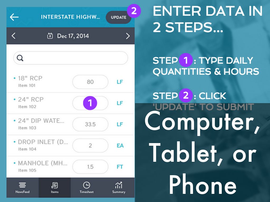 Seems like this daily project information can be tedious. Notes, Hours, Quantities coming from different places and arriving to different people at later times. What if it could all be done a single system? What if it could be accessed remotely by all project team members? What if it was made to be user-friendly requiring no training for it's users?