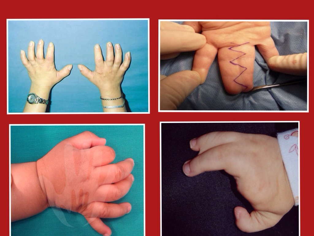 Polidactilia: presencia de dedos supernumerarios en manos o pies.