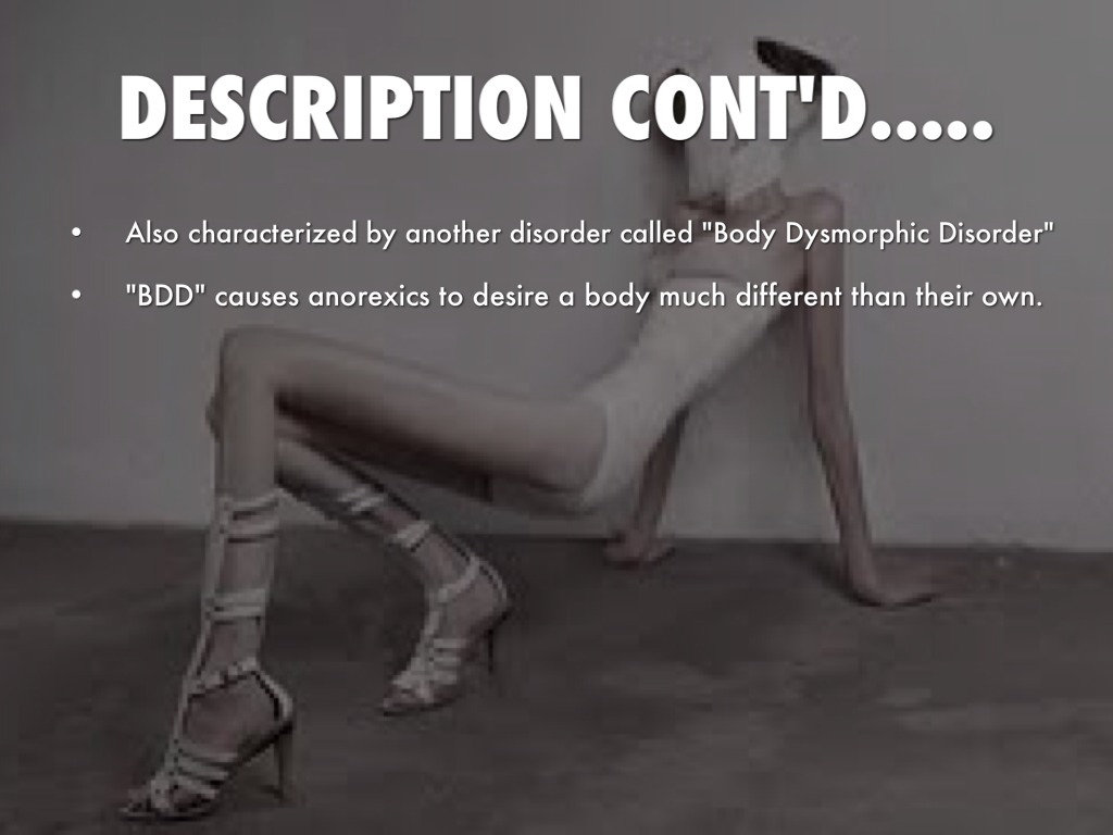 "BDD" causes anorexics to desire a body much different than their own.