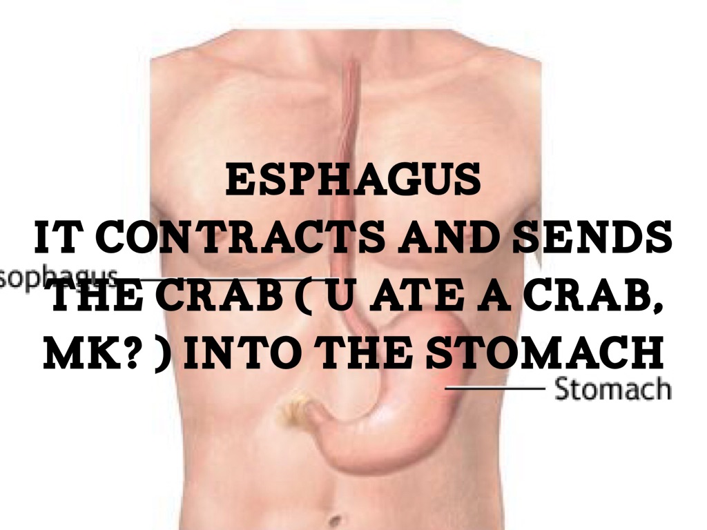IT CONTRACTS AND SENDS THE CRAB ( U ATE A CRAB, mk? ) into the stomach