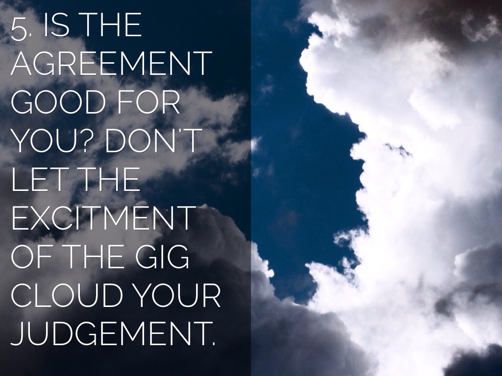 5. IS THE AGREEMENT GOOD FOR YOU? DON'T LET THE EXCITMENT OF THE GIG CLOUD YOUR JUDGEMENT.