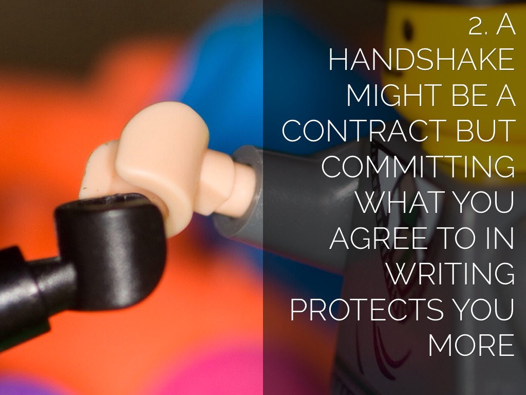 2. A HANDSHAKE MIGHT BE A CONTRACT BUT COMMITTING WHAT YOU AGREE TO IN WRITING PROTECTS YOU MORE