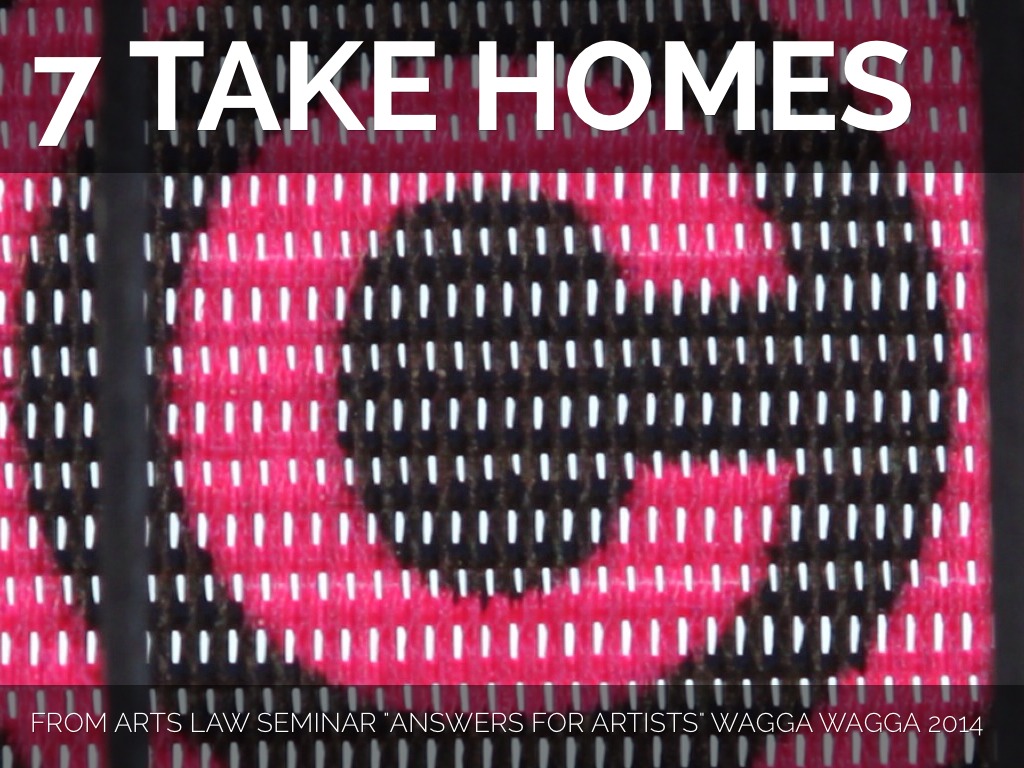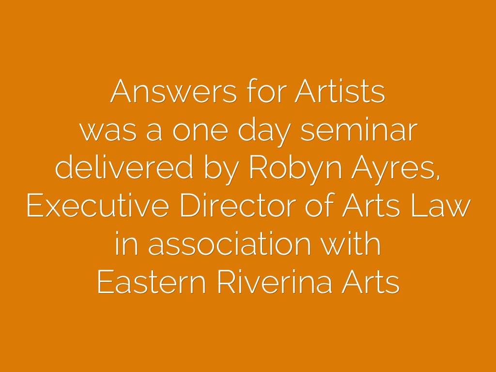 FROM ARTS LAW SEMINAR "ANSWERS FOR ARTISTS" WAGGA WAGGA 2014