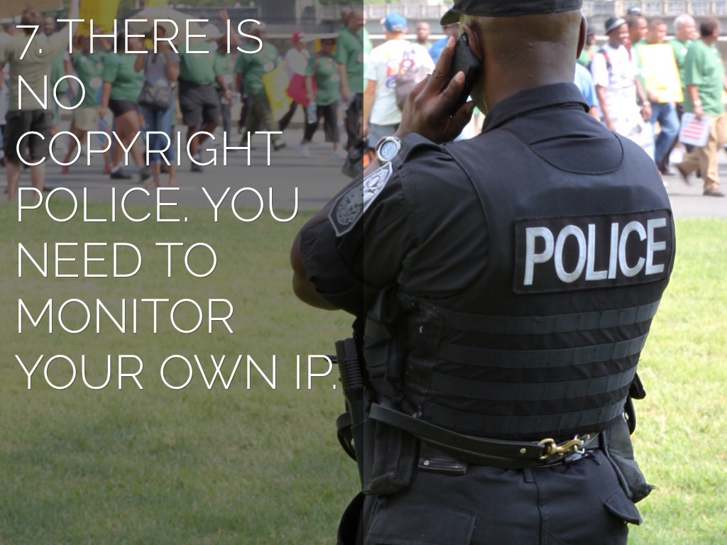 7. THERE IS NO COPYRIGHT POLICE. YOU NEED TO MONITOR YOUR OWN IP.